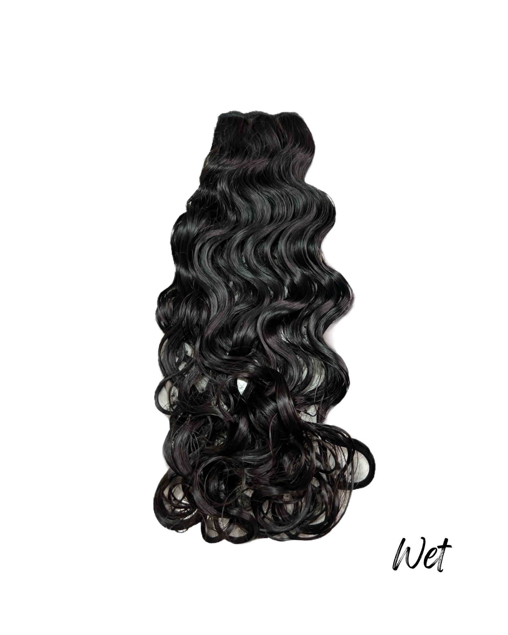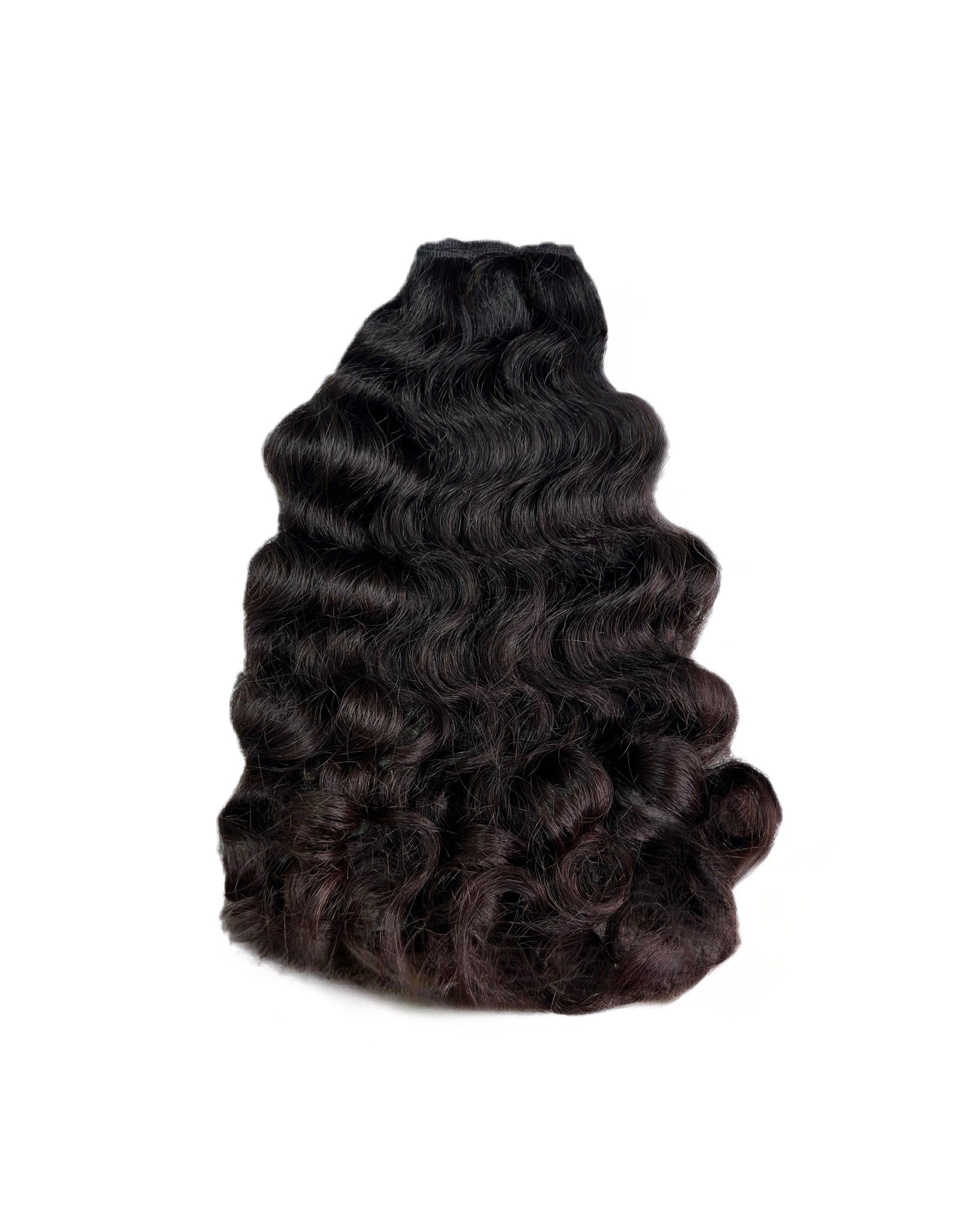 Bomb Black Hair Raw Indian Curly Extensions are semi-silky to moderately coarse, making this hair very versatile, blending well with most hair types. It’s known for its natural look; oftentimes seeming to others like it’s all yours! The curls can be worn free flowing, styled with moisturizing products, or styled with heat tools. The choice is yours!
